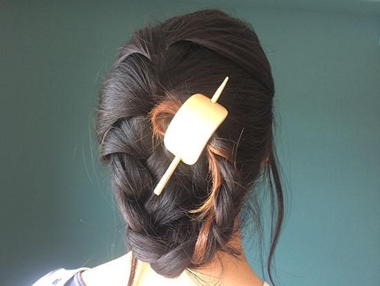 この髪飾りは、京都で育った竹を、「京もの指定工芸品」である京銘竹として油抜きをする事で艶のある白竹としています。
